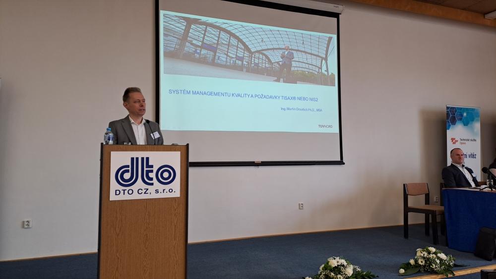 Panelovou diskusi otevřel Ing. Martin Drastich, Ph.D., zkušený certifikační auditor a také poradce mnoha firem v oblasti kybernetické bezpečnosti. Rozebral požadavky TISAX a NIS2 s důrazem, co může implementace požadavků přinést pro organizace, nehledě na legislativní povinnost. A že účastníky nešetřil. Uváděl mnoho příkladů, jak podcenění požadavků na bezpečnost a ochranu dat mělo až fatální dopad na podnikání a činnost některých firem a organizací. Představil, na co vše by se mělo systémově dávat pozor, co řešit, a samozřejmě zdůraznil, že právě systémové interní audity jsou klíčovým zdrojem informací o stavu a situaci, k mapování rizik a nebezpečí. Právě systémy kvality dle třeba ISO 9001 jsou vhodným základem pro realizaci těchto auditů. Zdůraznil význam a přínos integrovaných systémů a integrovaných auditů. Následovala diskuze účastníků a padala řada dotazů, třeba i na finanční náročnost implementace tohoto systému.