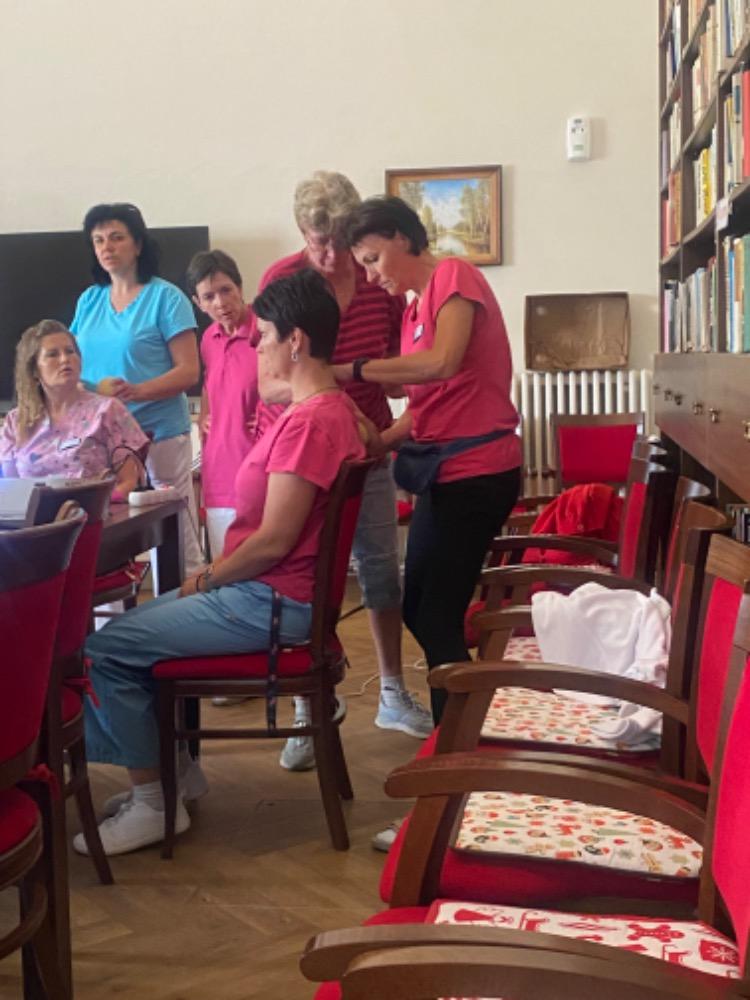 Kurz proběhl přímo na míru domova a my máme obrovskou radost, že se povedl a že se líbil. Vyzkoušeli jsme si přímo v praxi, jak polohovat klienta domova, který se nemůže hýbat, je hluchý, slepý, má alzheimera a moc se bojí. Ošetřující personál na praktickém příkladu viděl, jak s těmito klienty pracovat, jak polohovat apod. Bylo ÚŽASNÉ pozorovat, že se klientovi ulevilo a že nemusí pořad ležet v jedné poloze.