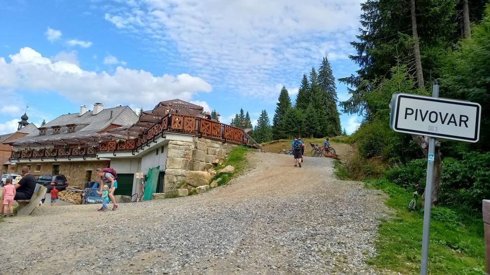 Došli jsme až na Modravu, dnes tak populární kvůli krimi seriálu Policie Modrava. Seriál se sice točí v Srní a v Kašperských Horách, ale turisty to táhne sem. Vskutku vydařené malebné městečko. Hned na kraji nás vítal pivovar.