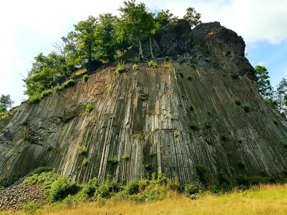 Co však z vyhlídky neuvidíte a musíte se přesunout o několik kilometrů dál do vesničky Líska, kde je impozantní Zlatý vrch z čedičových sloupců.