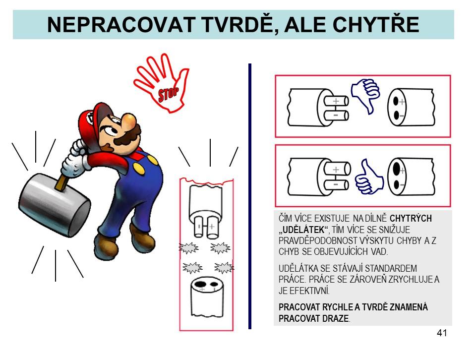 Sešla se výborná parta nadšených např. ze společností Hyundai Transys Czech, Mlékárny Kunín, Metalplastu, Ergonu aj. A protože nejlépe se učí tím, že si účastnící mohou zkoušet, co zrovna probírají, oba dva dny byly plné cvičení a příkladů z praxe. Nejvíce účastníky potěšilo, když si po teoretické přípravě mohli prakticky vyzkoušet audit 5S. Organizátor vybral dvě pracoviště v DTO CZ a tým rozdělený do skupinek měl 20min na focení, hodnocení, bodování. Nakonec se všichni sešli zpět v učebně a prezentovali výsledky.