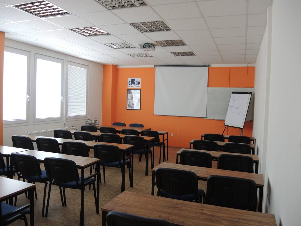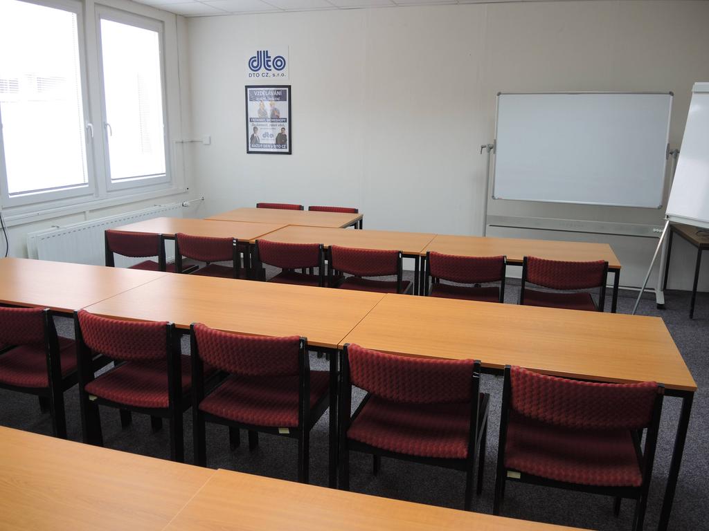 Učebna se nachází v druhém patře budovy, je klimatizovaná a s připojením na internet.